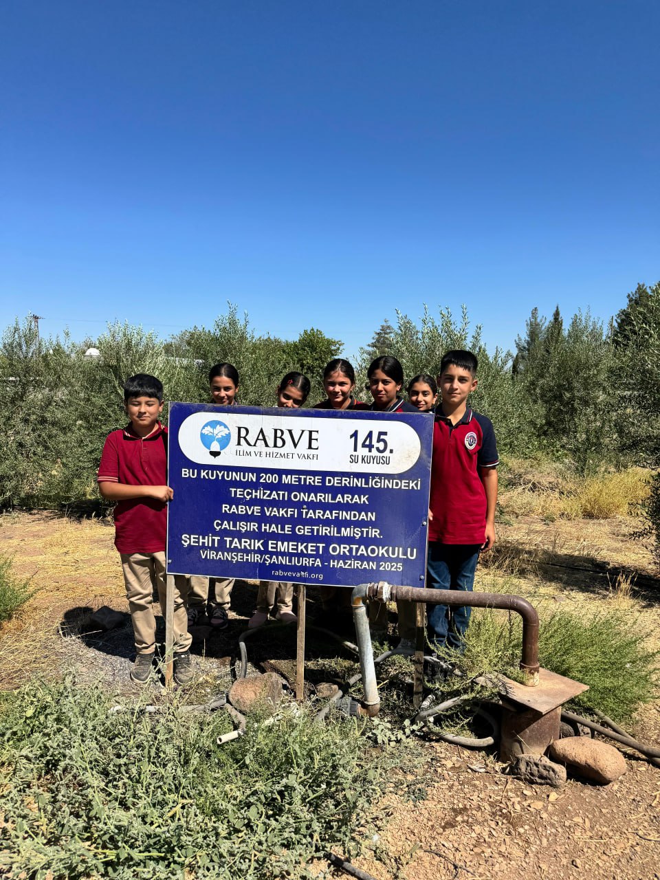 145. Su Kuyumuzu Şanlıurfa Viranşehir’de Şehit Tarık Emeket Ortaokulu’nda atıl olan su kuyusunu çalışır hale getirip okullar açılmadan önce öğretmen ve öğrencilerimizin kullanımına açtık.